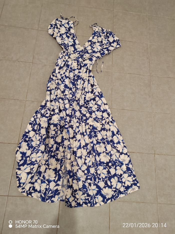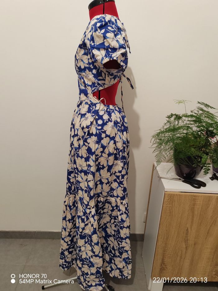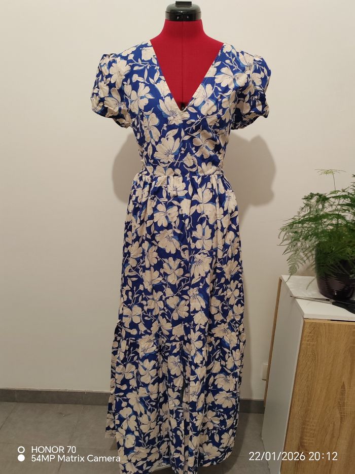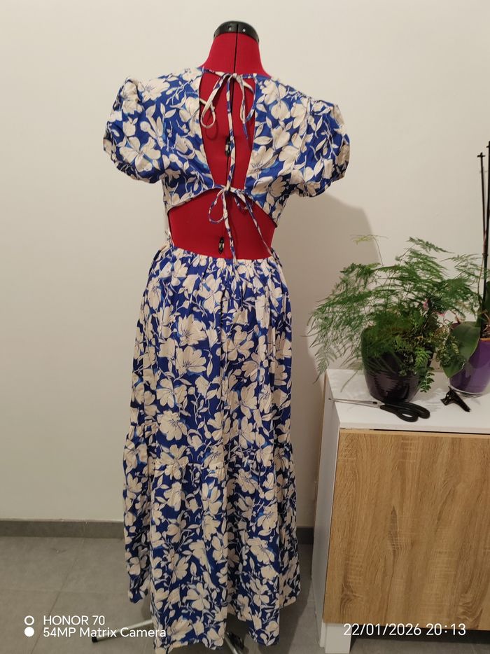 Se referme dans le dos Elastique a la taille de 34 a 51 cm Longueur jupe 103 cm fendue sur le devant Manches bouffantes Largeur à plat sous les aisselles 45 cm En coton Ideale pour cet été #geliscyrilletailleM #geliscyrilletaille38 Ref5CA3