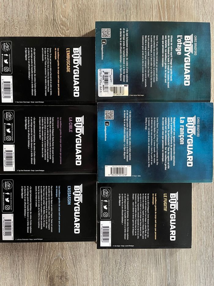 Type : Roman jeunesse Genres : Action - Aventure - Thriller Thèmes : Protection - Complot - Terrorisme Auteur : Chris Bradford Nombre de volumes : Intégrale (6 tome) État : Parfait état Résumé : Connor, 14 ans, vient d'être recruté par une agence spécialisée dans la protection des jeunes personnalités. Sa première mission le conduit à Washington, où il devra veiller sur la fille d'un des hommes les plus puissants au monde: le président des Etats-Unis ! Mais Alicia ne songe qu'à fausser compagnie à son escorte personnelle. L'adolescente ignore qu'elle est la cible de criminels déterminés. N’hésitez pas à me contacter pour plus d’informations !
