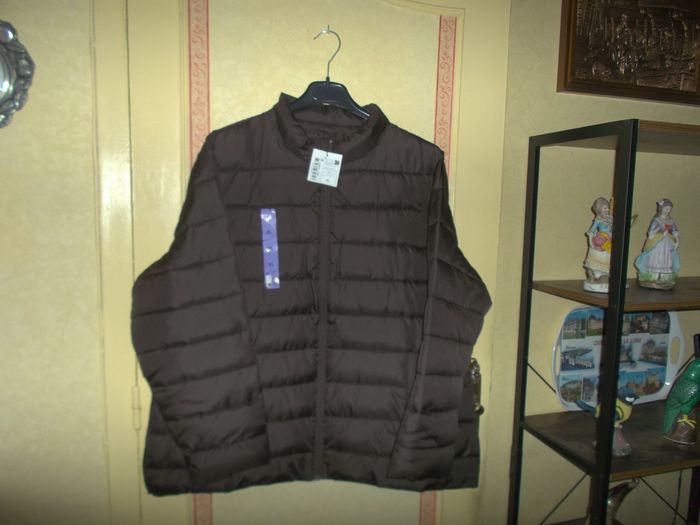 Blouson doudoune T 48-50. Couleur chocolat. Largeur poitrine a plat 65 cm hanches 68 cm. Polyester. Neuf. Acheté 25€.