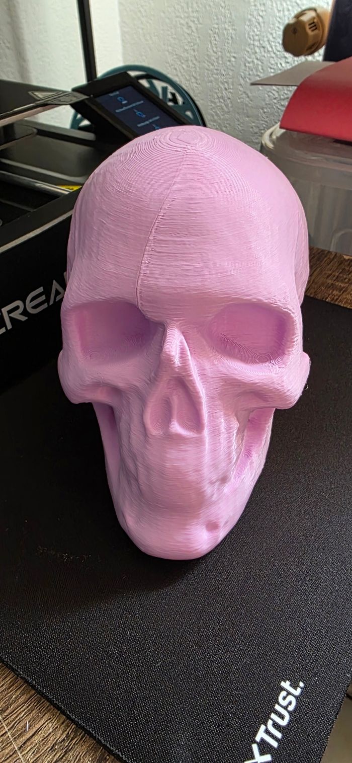 🤗 Création 3D 💥 💨 Décoration Tête de Mort Couleur violet clair Matière : PLA ( plastique biosource , léger et résistant ) Dimensions : 16.5X12,5 cm ! , 185gr 15€