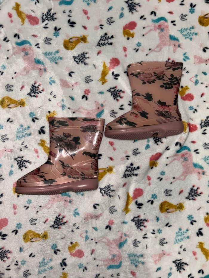 Botte de pluie rose à fleur - Taille 22  - photo numéro 1