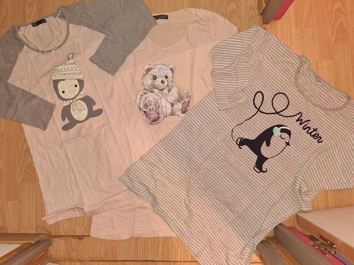 Vends un lot de 3 chemises de nuit à manches longues en taille 2 propres, lavées, repassées 5 e le lot 2 e l'unité