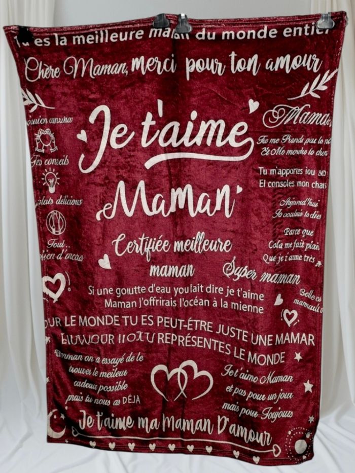 💥Plaid polaire , tout doux , " Je t'aime Maman "