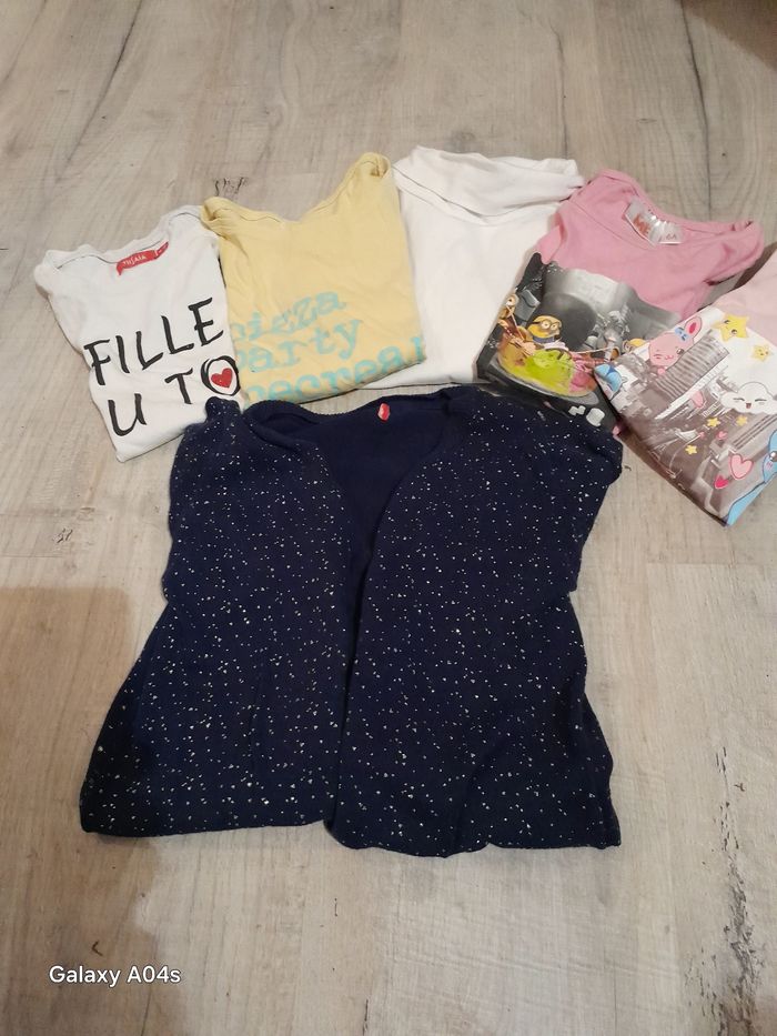 Lot fille theeshirt 3 manches longues 1 sous pull 1 theeshirt manches courtes 1gilet manches longues boutons devant