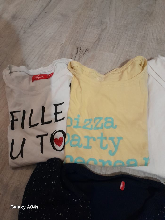 Lot fille theeshirt 3 manches longues 1 sous pull  1 theeshirt manches courtes 1gilet manches longues boutons devant  - photo numéro 5
