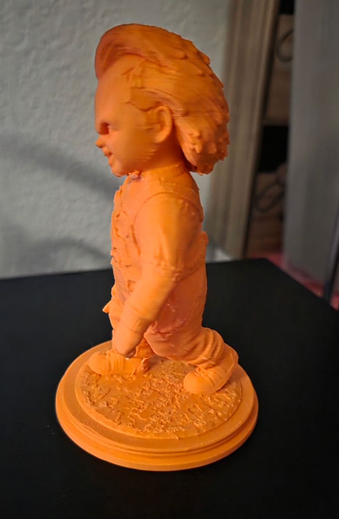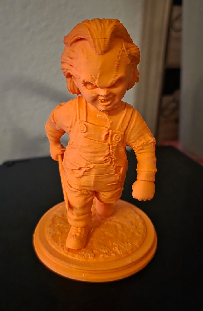 🤗 Création 3D 💥 💨 Décoration Figurine Chucky Couleur Orange Matière : PLA ( plastique biosource , léger et résistant ) Dimensions : 13 Cm d'hauteur ! 10e