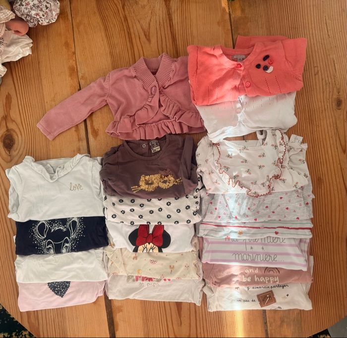 Je vends un joli lot de vêtements bébé fille en taille 6 mois, idéal pour compléter la garde-robe de votre bébé 💕 Le lot comprend : • Hauts manches longues (sweats, t-shirts, pulls) • Gilets et cardigan • Pantalons, leggings et joggings • 1 joli manteau / veste mi-saison 🎀 Couleurs douces et motifs mignons 👕 Marques variées ✨ État : très bon état (certains très peu portés) 📦 Lot complet, vendu uniquement en lot 🚭 Maison non-fumeur 📩 N’hésite pas à me contacter pour plus de photos ou d’informations.