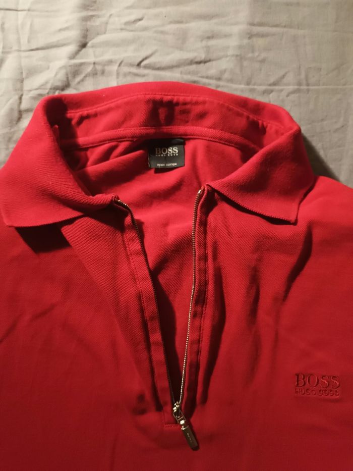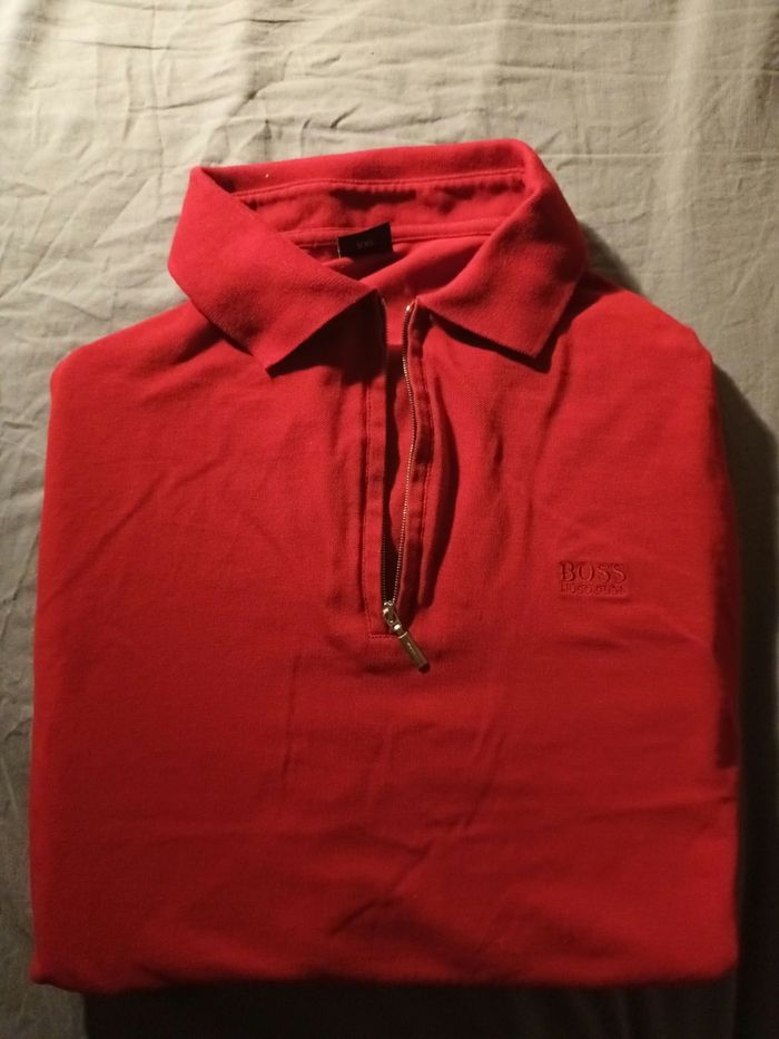 Polo zippé BOSS rouge, style épuré et élégant. Pièce intemporelle, facile à porter, parfait pour un look chic sans effort. Comme neuf Taille XXL