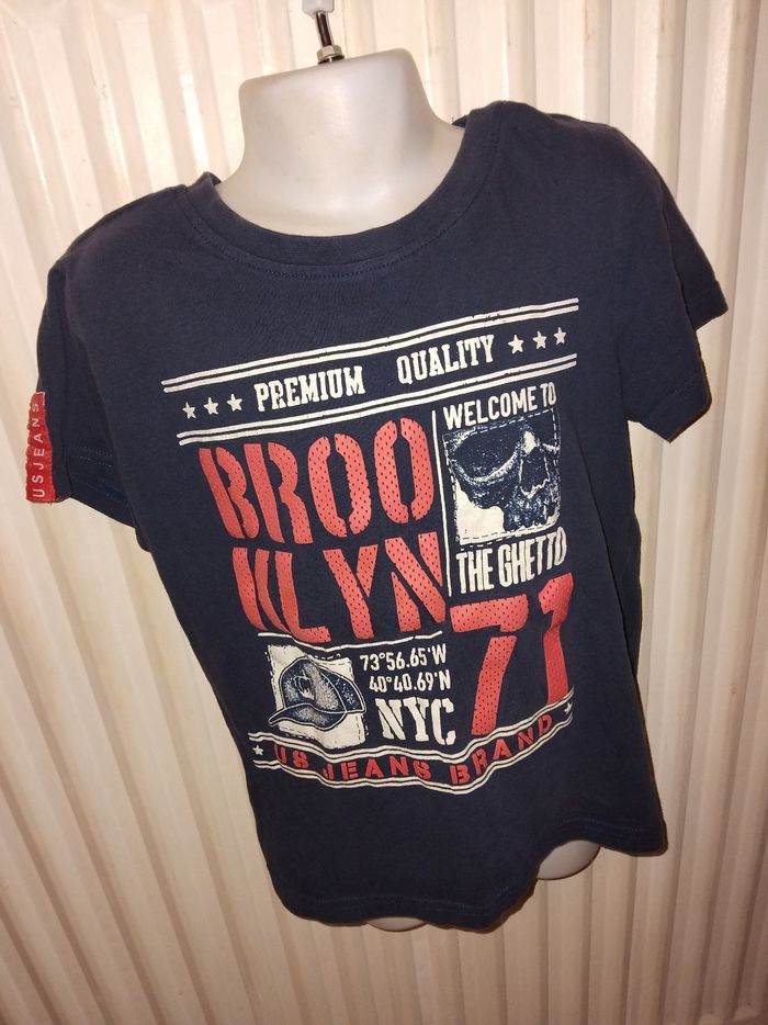Très beau tee shirt pour un garçon De couleur bleu marine à motif En très bon etat