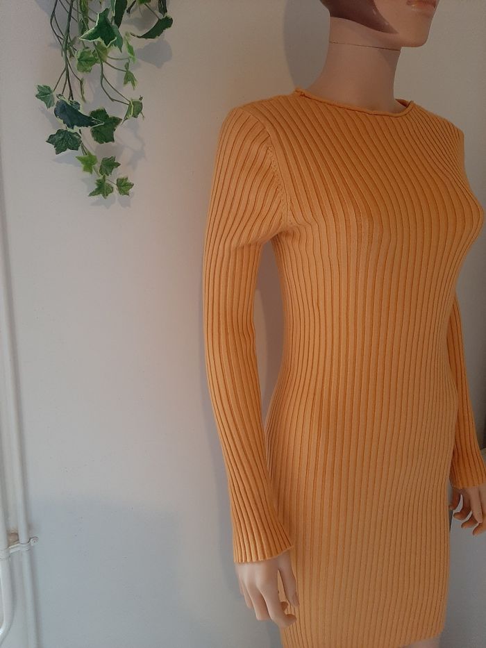 Bonjour 🌺 👋 Robe à manches longues en BE : parce qu'il y a un tout petit défaut de couture sur la manche gauche. Sinon est en excellent état générale 😉 Portée 2 fois Très belle robe et qui tient chaud. Agréable à porter Lavée 🙂 Couleur : orange clair Saison : mi-saison/hiver Poids: 457g Colis soignés 🌺 🌸