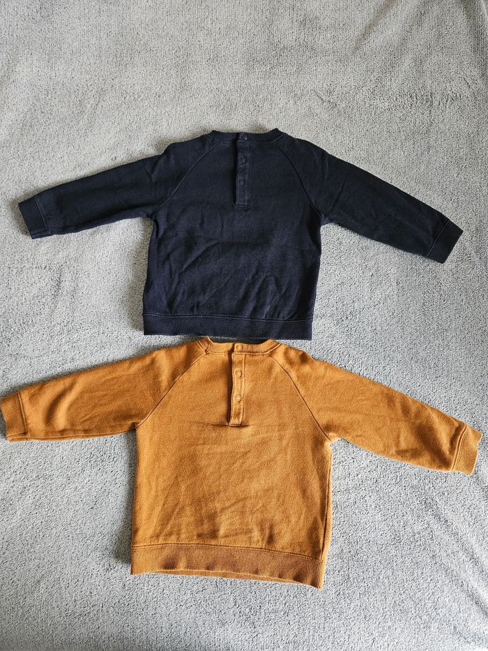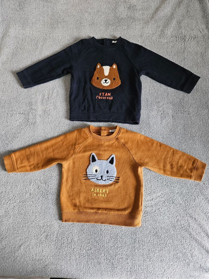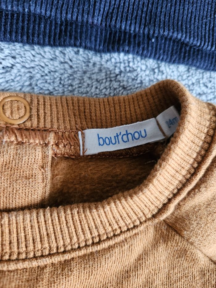 Lot de 2 pulls taille 24 mois de la marque bout'chou (monoprix), un bleu marine et un camel.