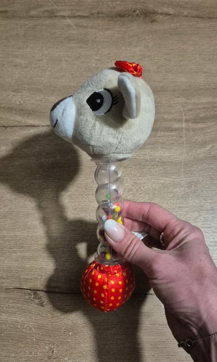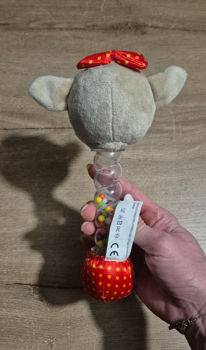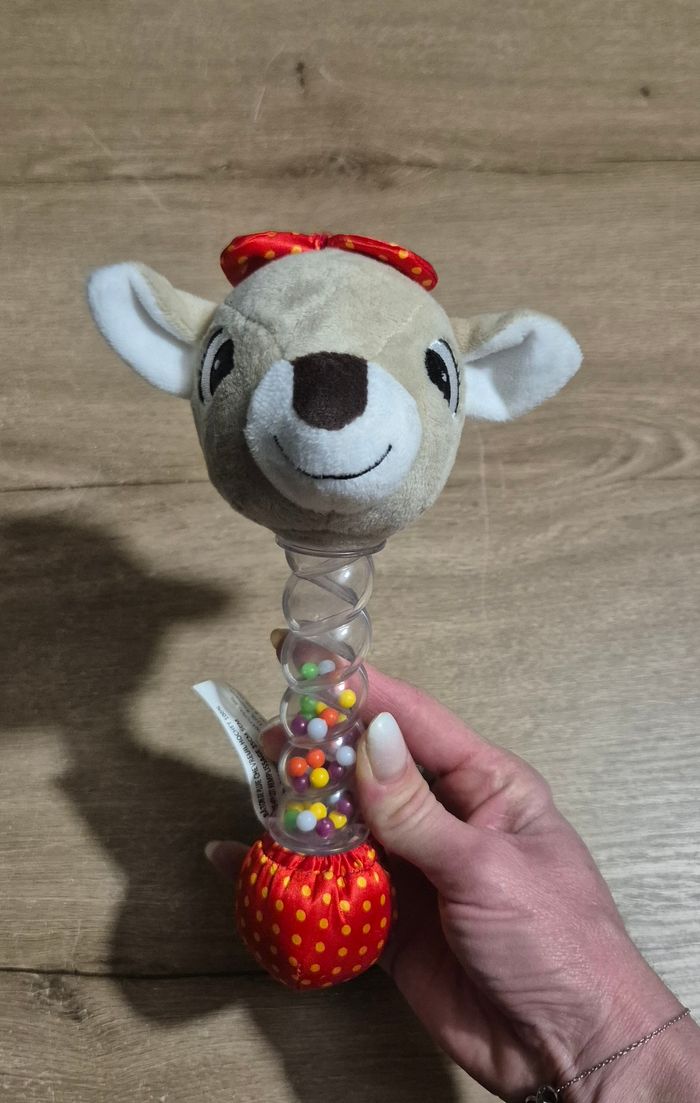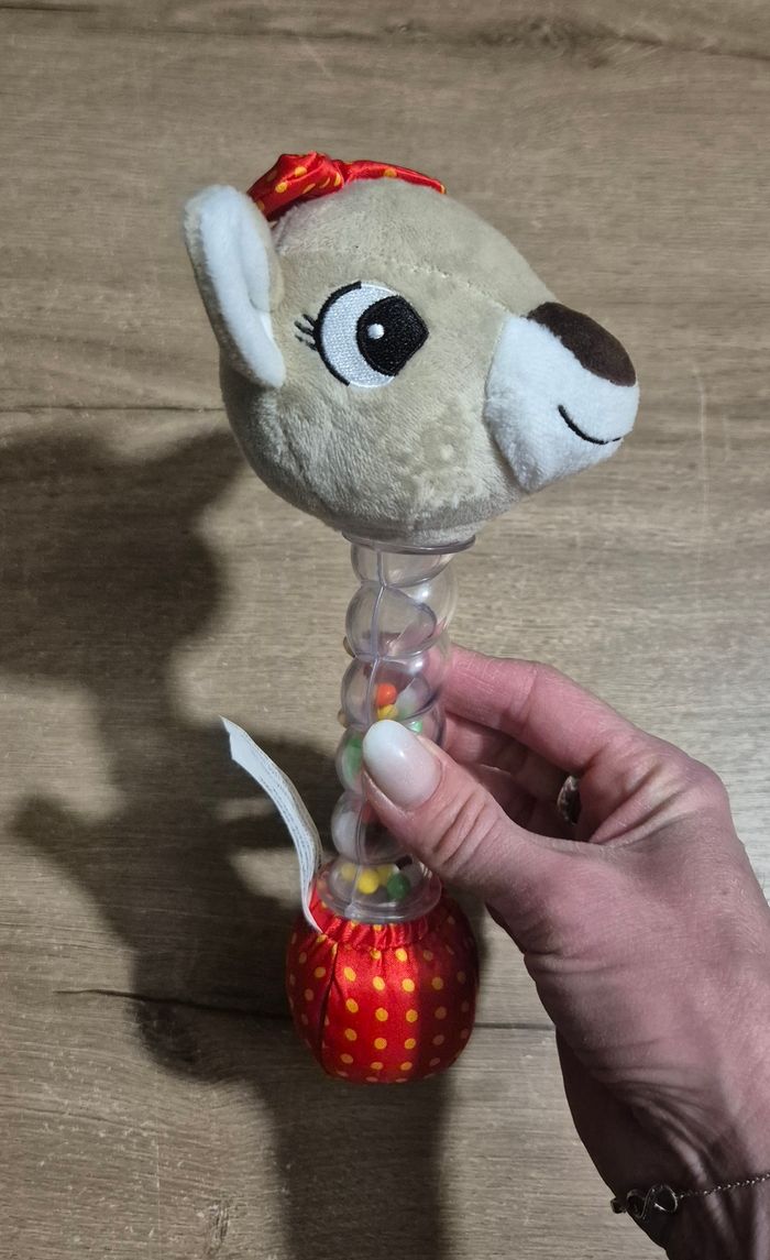 Hochet bâton de pluie avec tête de chevreuil en peluche Très bon état
