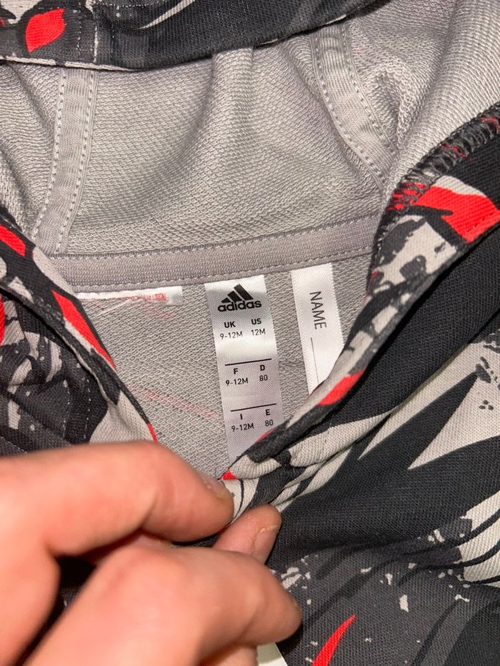 Veste adidas bébé avec capuche Couleur : rouge et gris Fermeture avec la fermeture éclaire Taille : 9-12 mois