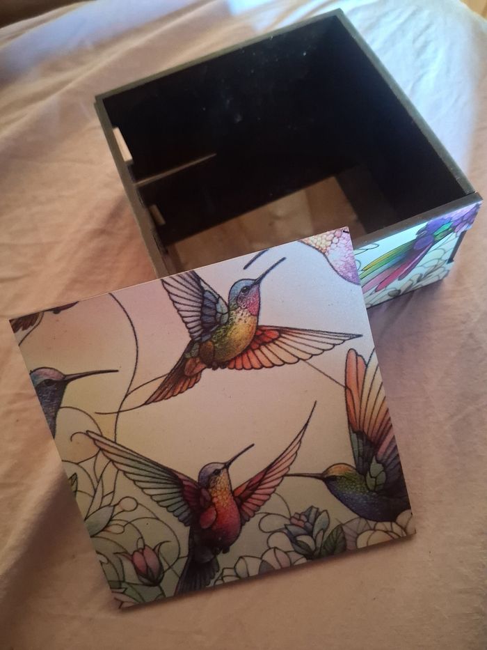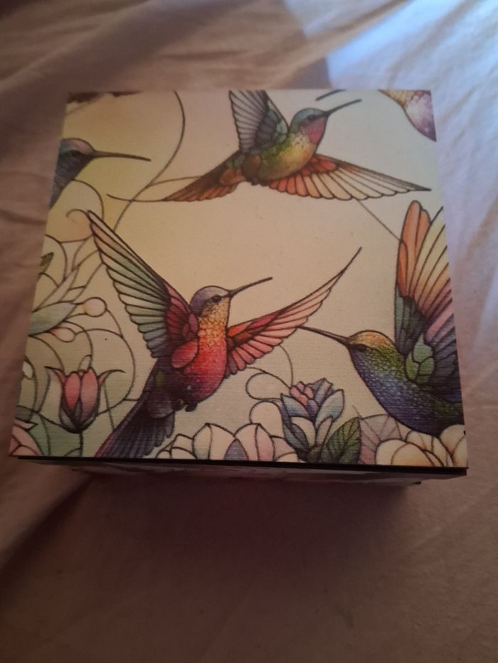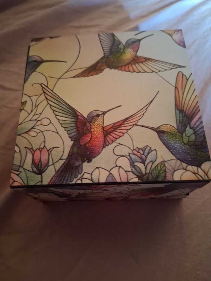 Boite bijoux decorative oiseau tres bon etat couvercle juste a poser dessu