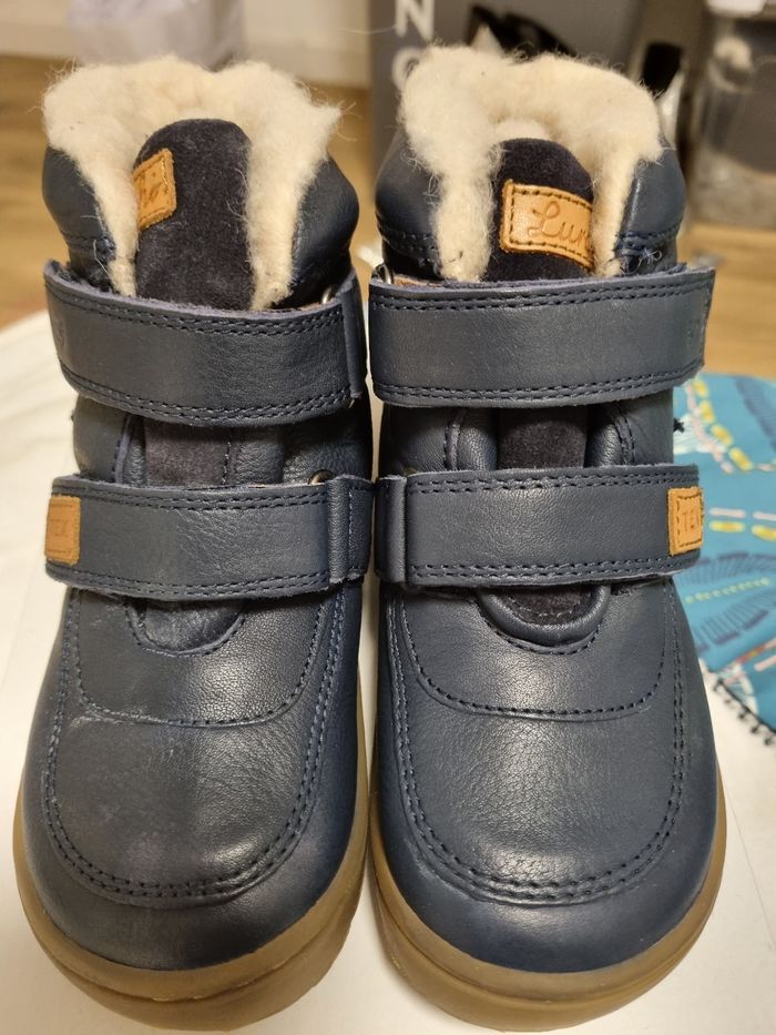 Bottines Barefoot de la marque Lurchi Bottines en cuir très chaudes avec un épais fourrage en laine Membrane imperméable en tex Semelle amovible Fermeture par velcros Taille 29