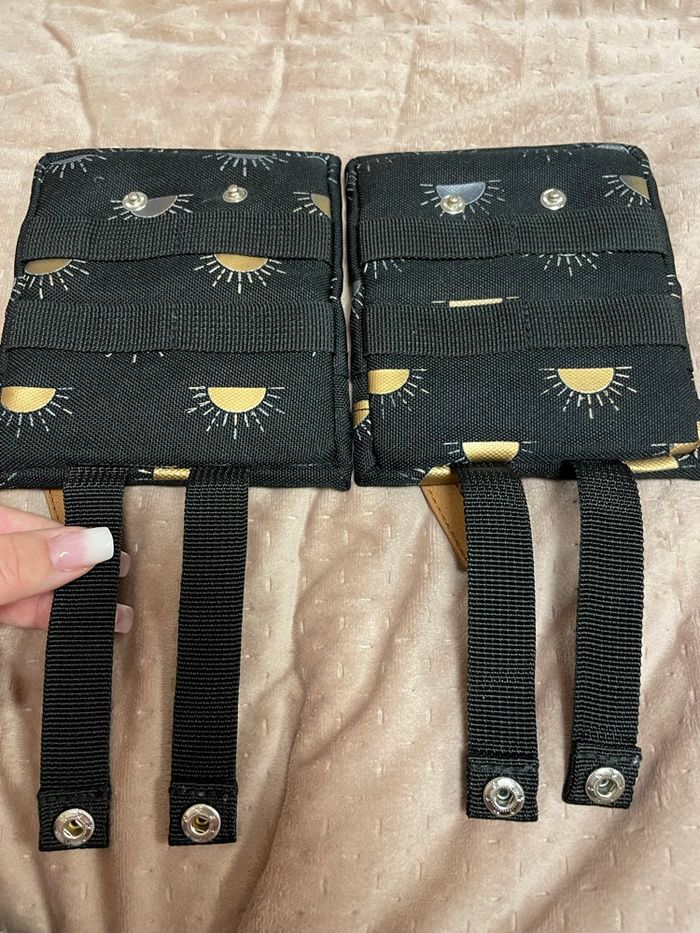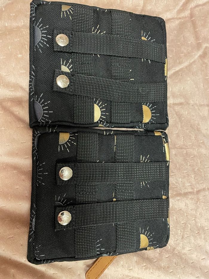 Lot de 2 pochettes latérales Cabaïa, modèle Waikiki Beach. Les pochettes ont perdu leur doré sur le bas. Le tissu est en parfait état, et les pressions aussi. Prix cassé 5€ le lot.