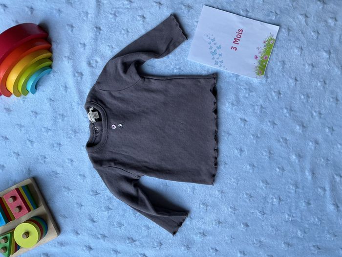 teeshirt manches longues violet gris 3 mois grain de blé - photo numéro 4