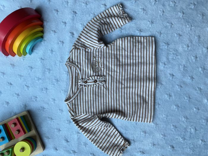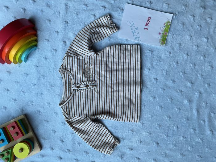 teeshirt manches longues beige rayé marron broderie poitrine 3 mois vertbaudet - photo numéro 1