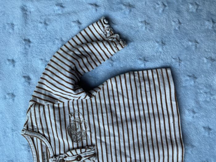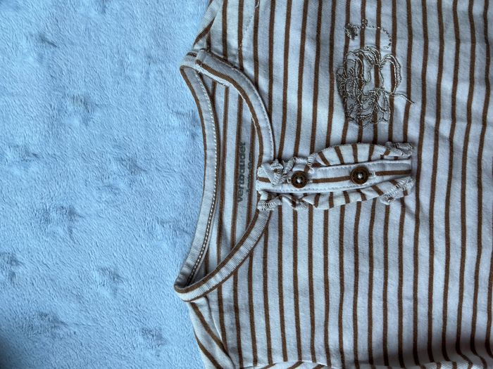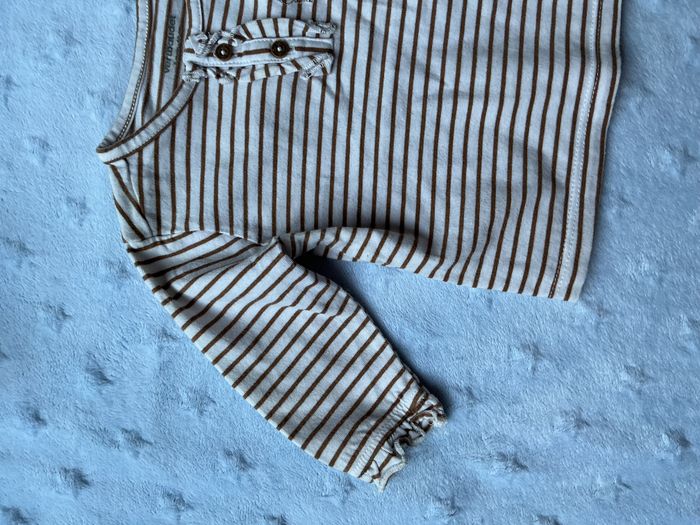 teeshirt manches longues beige rayé marron broderie poitrine 3 mois vertbaudet - photo numéro 7