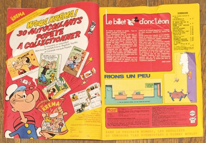 Ancien journal de Mickey avec mini album Popeye Krema N°1532 1981 vintage