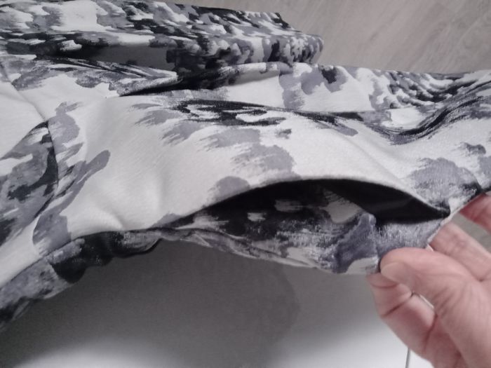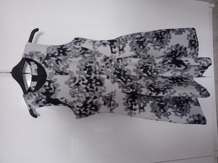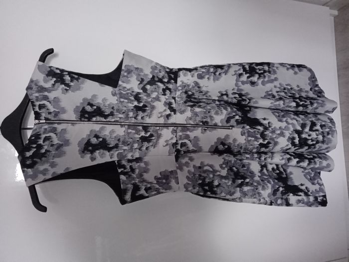 Magnifique robe volumineuse, entièrement doublée, couleurs grises et noirs, légèrement brillant, avec des poches, fermeture éclair au dos, très jolie matière, plis marqués sur le devant, longueur aux genoux Parfaite pour une cérémonie, fête Envoi rapide Neuve