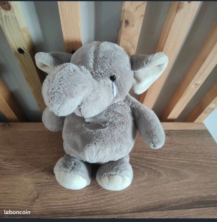 Voici un adorable éléphant en peluche gris de la marque Histoire d'Ours. Cet animal en doux t Parfait pour câliner et jouer, il fera le bonheur des enfants. Avec ses grands yeux noirs et ses oreilles douces, cet éléphant est un compagnon de jeu idéal. Il est prêt à trouver une nouvelle maison aimante ! - Marque : Histoire d'Ours - Type : Peluche éléphant - Couleur : Gris - Hauteur : Environ 20 cm - Condition : Très bon état