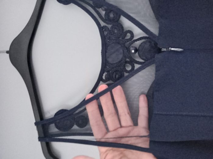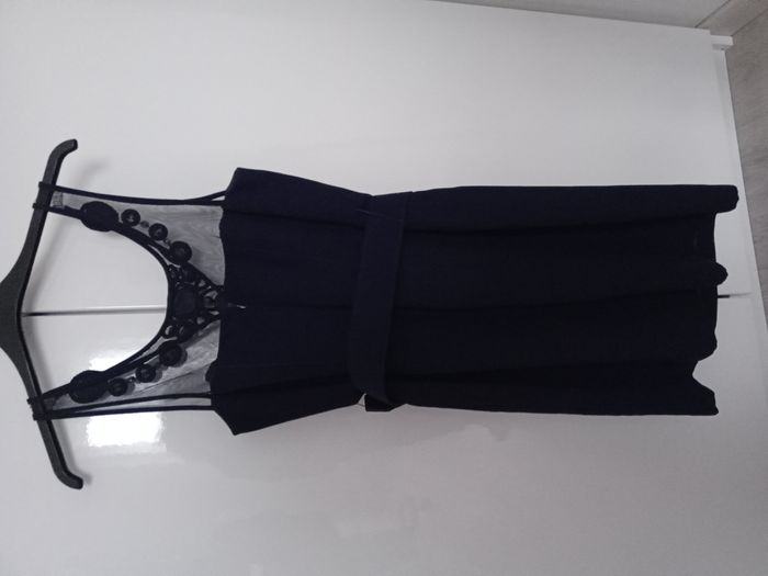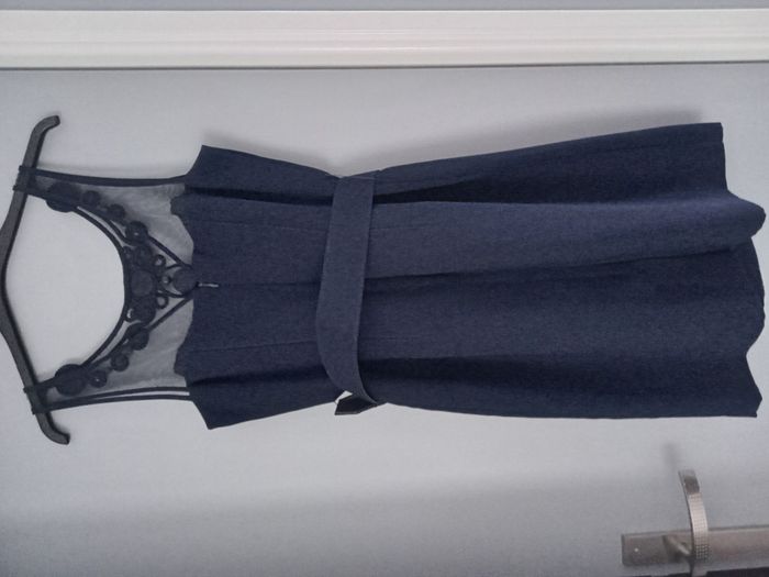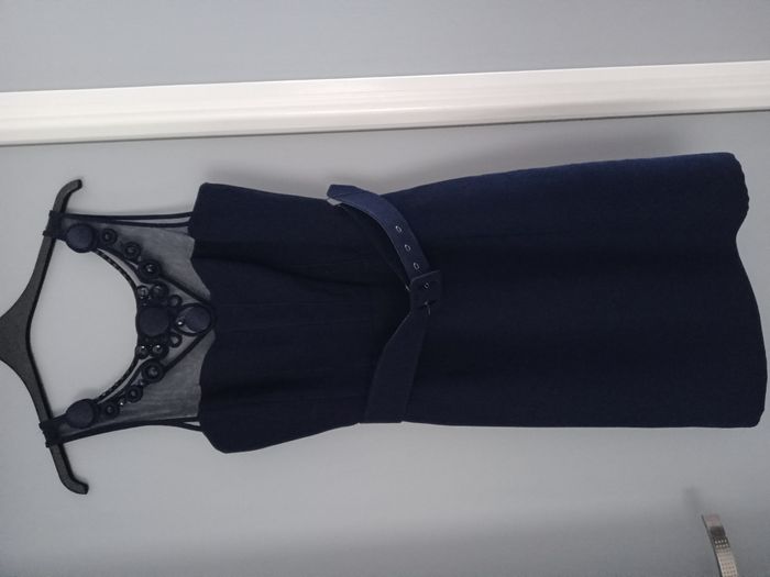 Magnifique robe droite couleur bleue marine ornée de jolies perles et torsades sur le décolleté poitrine, avec un joli voile, robe entièrement doublée, avec des passants à la taille pour sa ceinture, robe de très haute qualité, longueur au-dessus des genoux Robe neuve jamais portée Robe parfaite pour une cérémonie, pour un évènement N'hésitez pas si vous voulez d'autres photos Envoi rapide Marque RENE DERHY