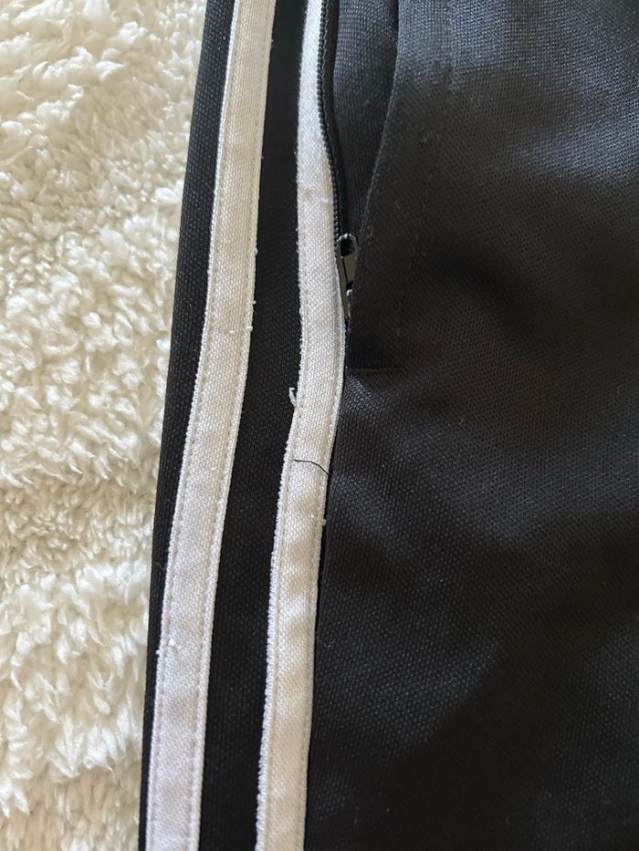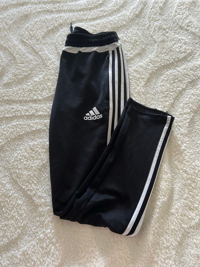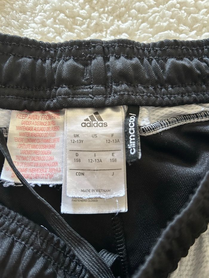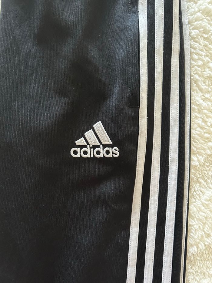 Jogging Adidas de couleur noir et blanc porté plusieurs fois (défaut en photo) Taille : 12-13 ans