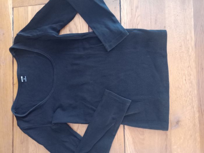 Haut à manches longues côtelé noir, col rond, neuf, taille S, erreur de taille, jamais porté. Deux autres couleurs sont également en vente neufs dans mon dressing. En vente à 10€ pièce actuellement.