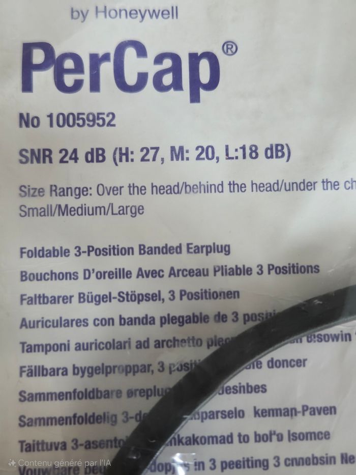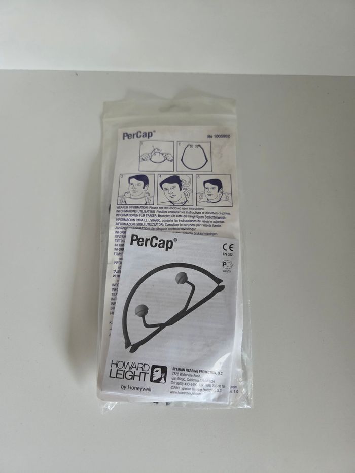 protection auditive à arceau de la marque professionnelle Howard Leight by Honeywell, modèle PerCap • ​État : Neuf, jamais déballé (sous blister scellé) • ​Modèle : PerCap No 1005952 • ​Performance : Atténuation sonore SNR 24 dB • ​Praticité : * Arceau pliable (se glisse facilement dans une poche) • ​Multi-positions : se porte sur la tête, derrière la nuque ou sous le menton • ​Léger et confortable pour un port prolongé • ​Usage : Idéal pour le bricolage, les travaux bruyants, le jardinage ou les environnements industriel