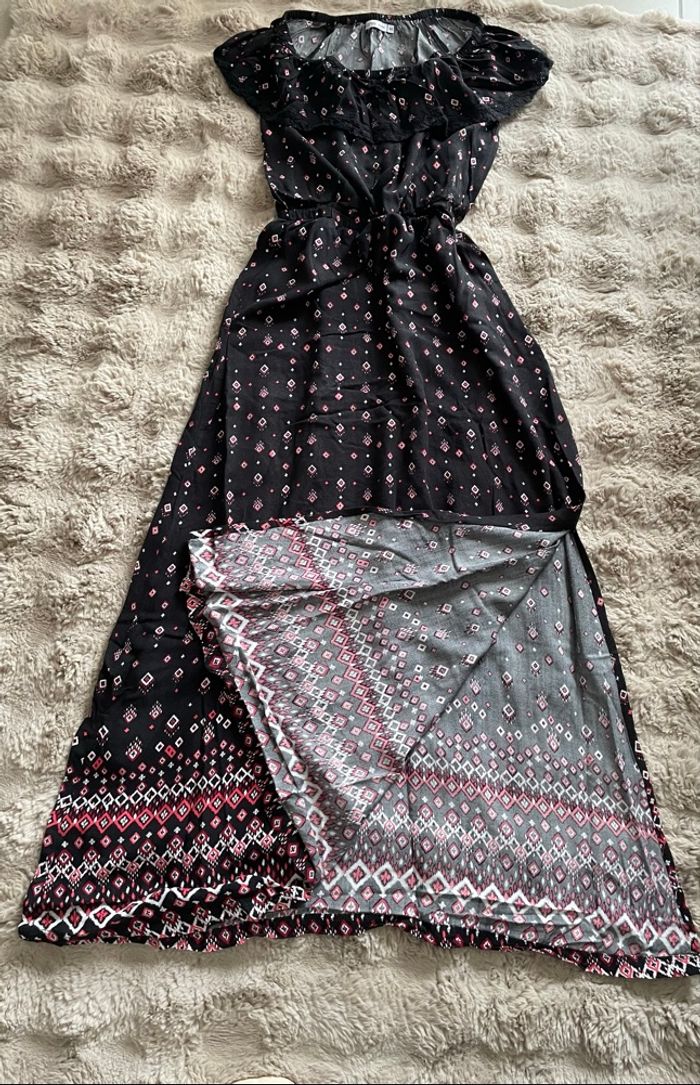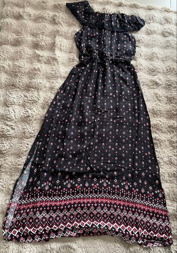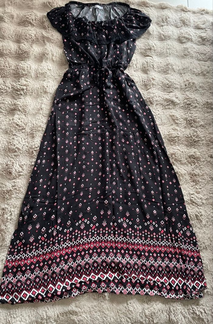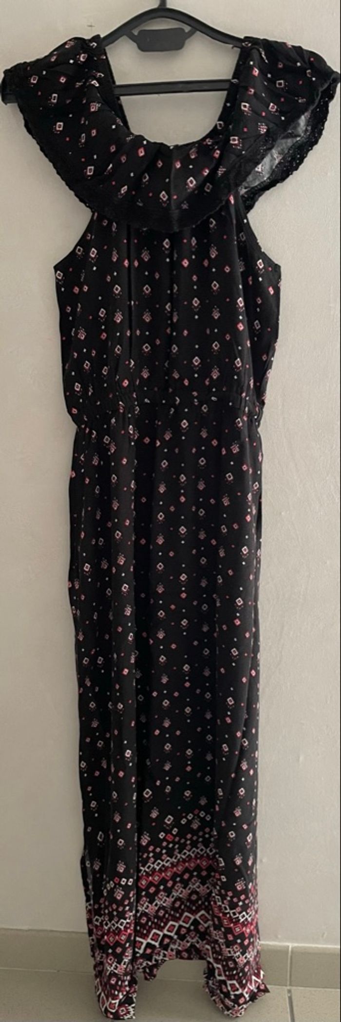 Robe longue fluide Gémo femme taille 40 Robe à imprimer un lien à la taille élastique Bas de robe fente porté quelques fois Très bon état Dimensions à plat longueur 126 cm Entre aisselles 46 cm
