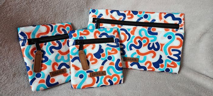 Ensemble 3 pochettes cabaïa bleu orange - photo numéro 1