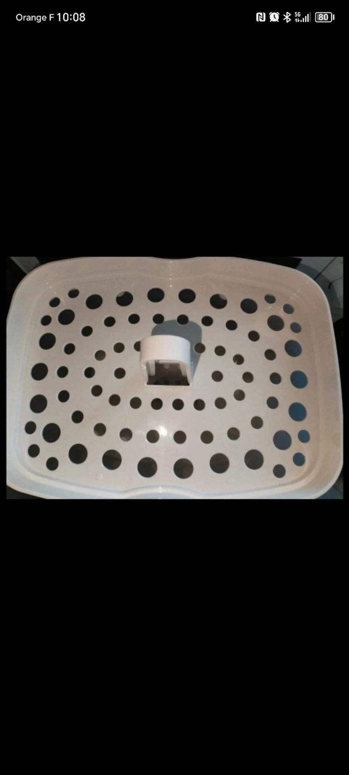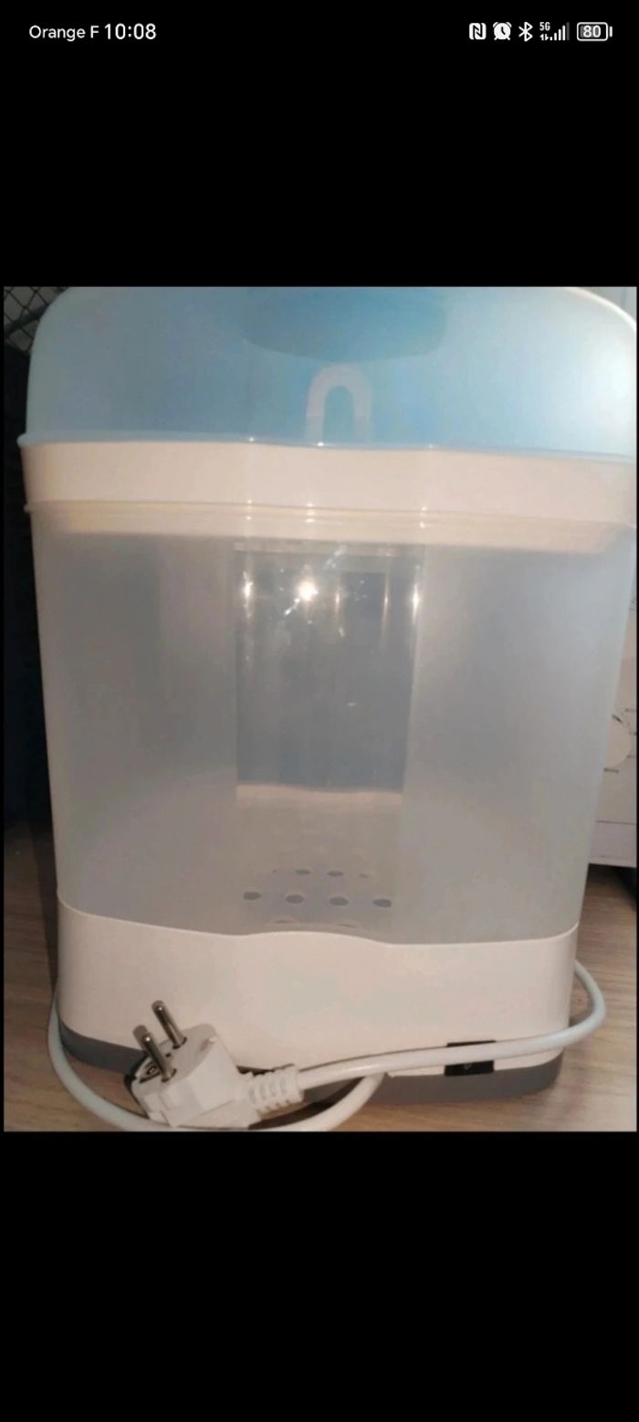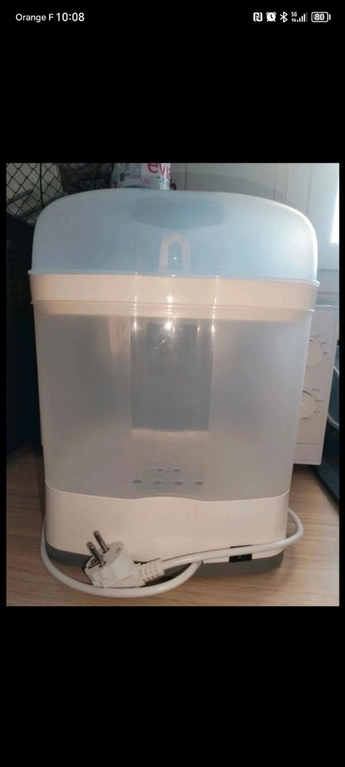Stérilisateur de biberons🍼 Très peut utiliser Marque : Chicco ❇️ Peu contenir pas mal de biberon ( voir photo) 💰 15€ Réduction de lot activé sur mon compte, je reste également ouverte sur vos offres.