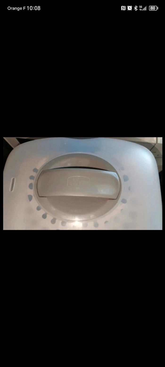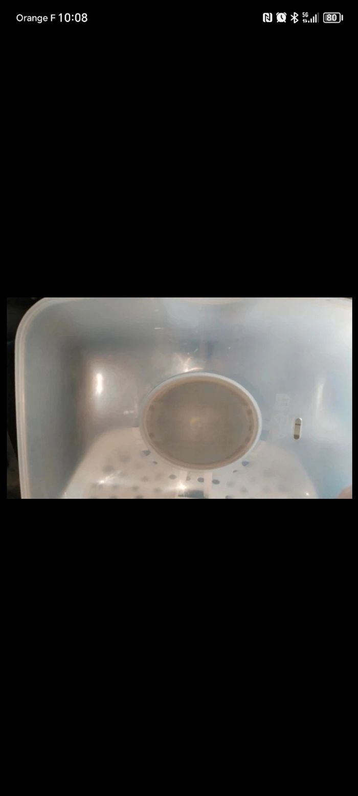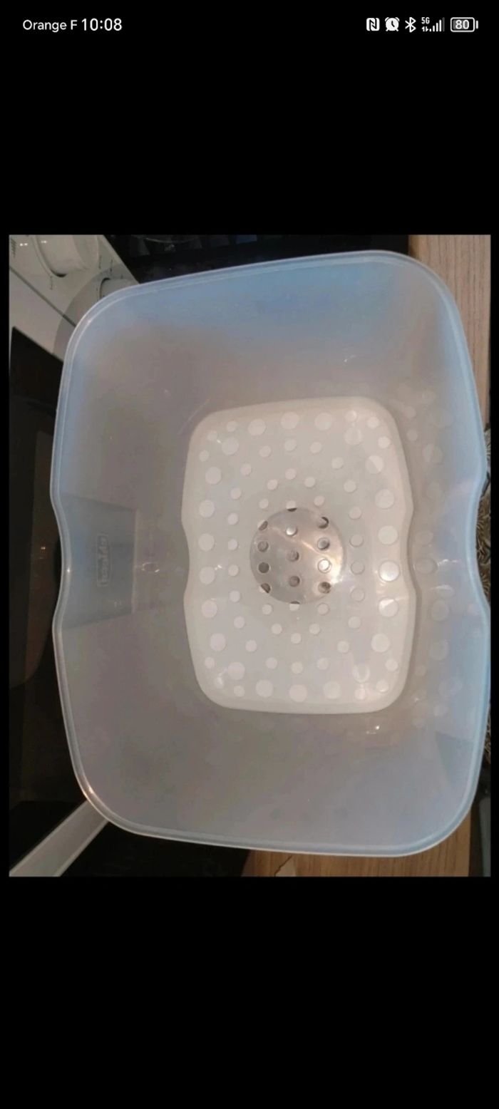 Stérilisateur de biberons🍼 Très peut utiliser Marque : Chicco ❇️ Peu contenir pas mal de biberon ( voir photo) 💰 15€ Réduction de lot activé sur mon compte, je reste également ouverte sur vos offres.