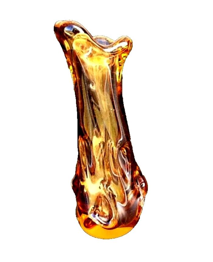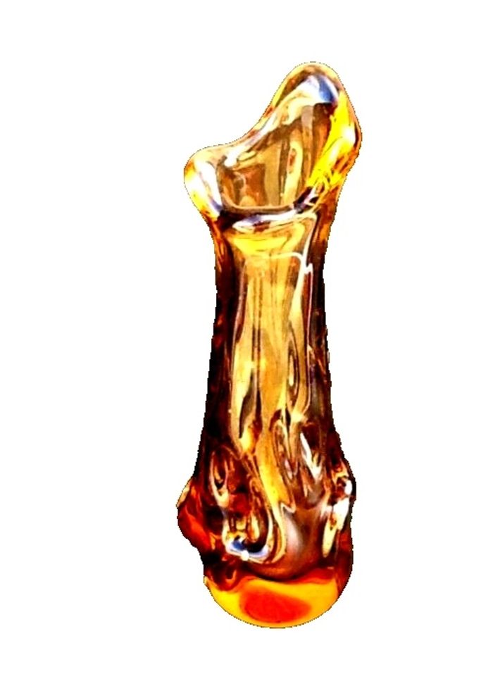 Années 1970 Vase / Soliflore Verre épais coloré rose transparent Soufflé à la bouche