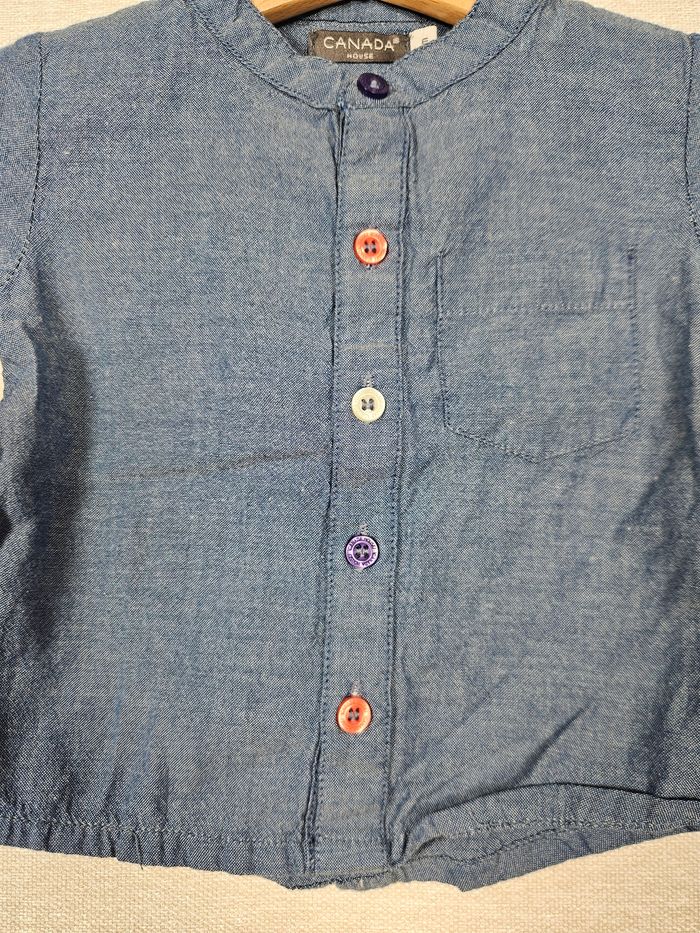 Hello ! 👋 Je te propose cette pièce de la marque Canada House, une super trouvaille pour le dressing de bébé 👶 Cette élégante chemise en coton avec son col officier et ses boutons colorés apportera une touche chic et originale aux tenues de votre petit garçon. Informations utiles: * 👕 Article : Chemise à manches longues et col officier * 📏 Taille : 3 mois * 🌈 Couleur : Bleu chiné * 🧵 Matière : 100% coton * ✨ État : ⭐⭐⭐⭐ Les petits + : 🏡 Logement non fumeur et sans animaux. 📦 Envoi rapide et soigné. N'hésite pas si tu as la moindre question ou si tu veux d'autres photos ! Je suis là. 😉 #bleu #canadahouse #3mois #bebe #chemise #coton #chic #modebebe #habille #tresbonetat
