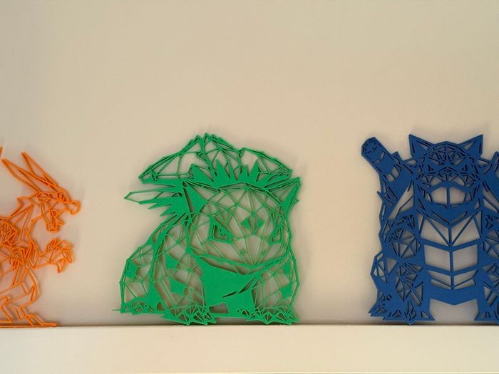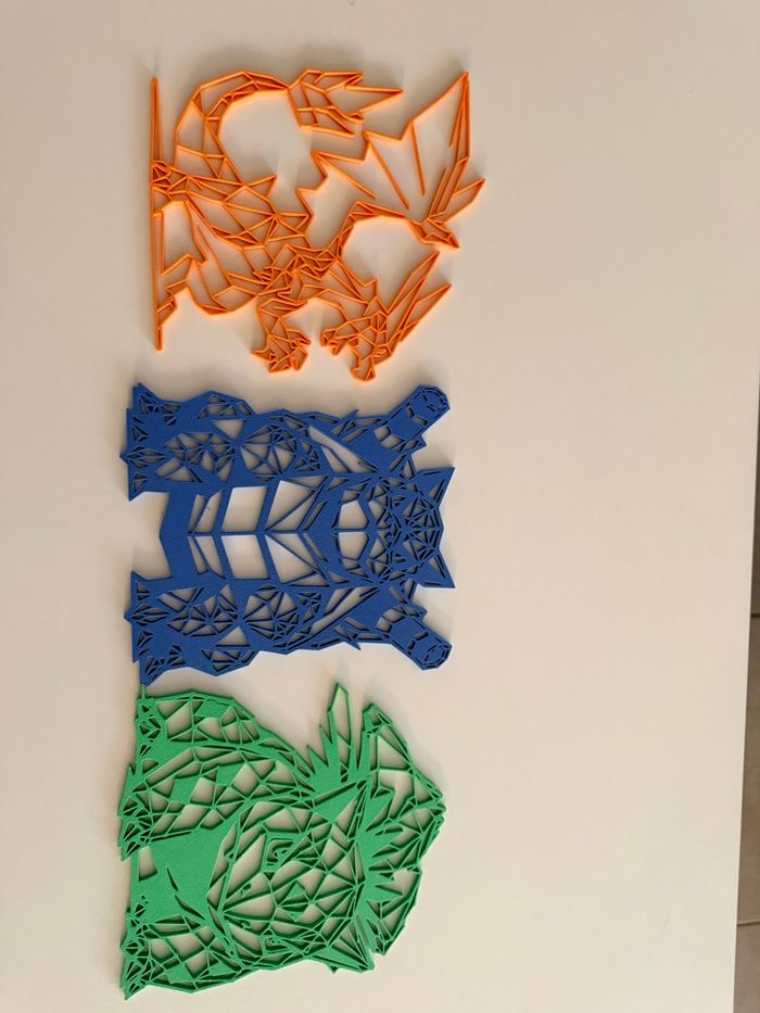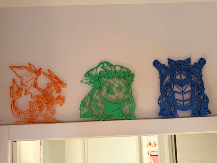 🔥💦🌸 Dracaufeu , Tortank , Florizarre 🔥💦🌸 Design low poly moderne et unique Impression 3D avec Filament PLA ( plastique ecoresponsable) Léger et durable Parfait pour bureau, étagère, setup gaming ou cadeau Objet déco fait avec soin - chaque pièce est unique De légères traces d'impression peuvent être visibles (normal en impression 3D) Envoi rapide et soigné Les 3 font environs 20cm par 5mm d’épaisseur Le prix est pour le lot 😀 Décoration uniquement. Non adapté au jeu.