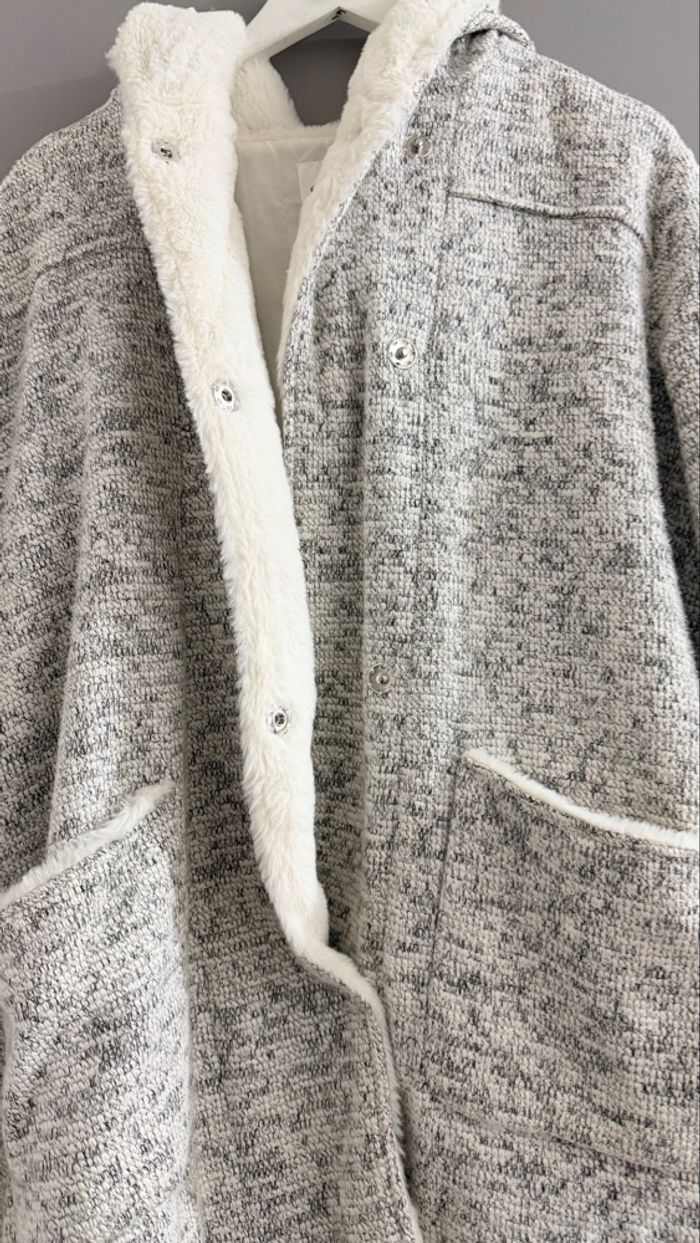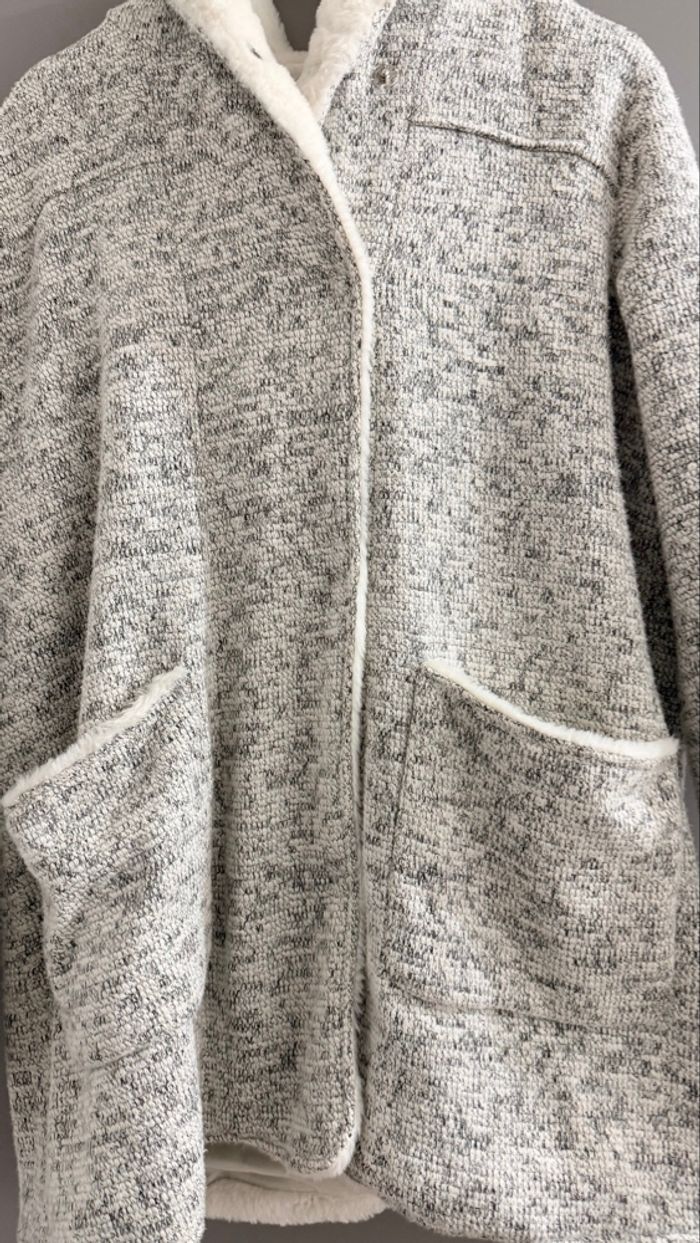 🌸Manteau/veste/doudoune chaude polaire; capuche; fermeture boutons 🌸Couleur gris/blanc 🌸Marque Gémo 🌸Taille XL 🌸Très bon état #modestyfrip 🛍️ #manteaufemme #manteaufemmexl #doudounefemmexl #femmexl #hiverfemme #vestefemmexl #vestefemme #polairefemme