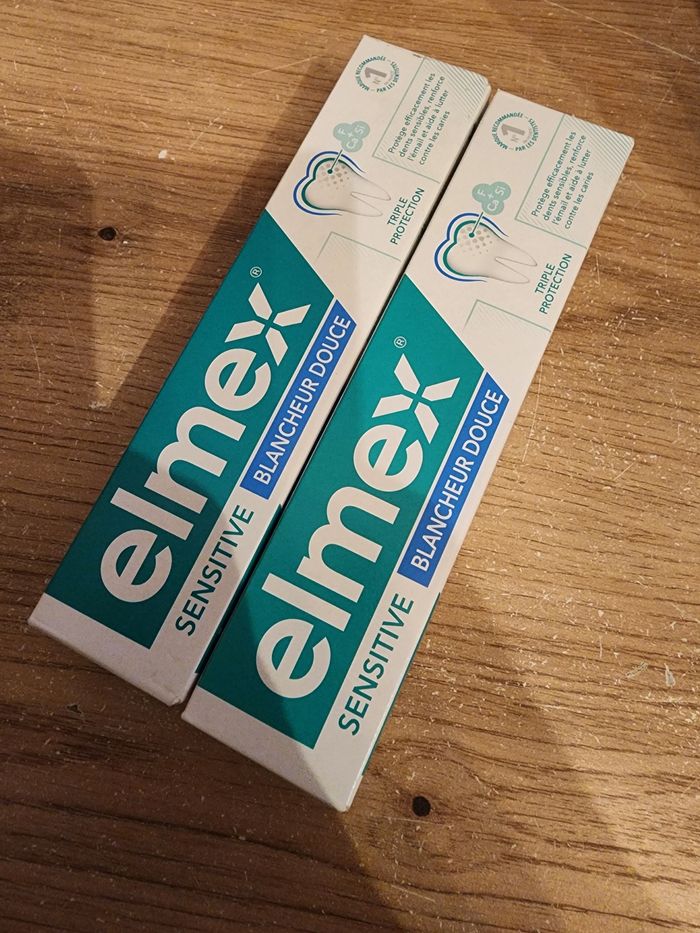 Lot de 2 dentifrices elmex sensitive blancheur douce neuf non ouvert, date 11/2027 Plusieurs lot de disponible