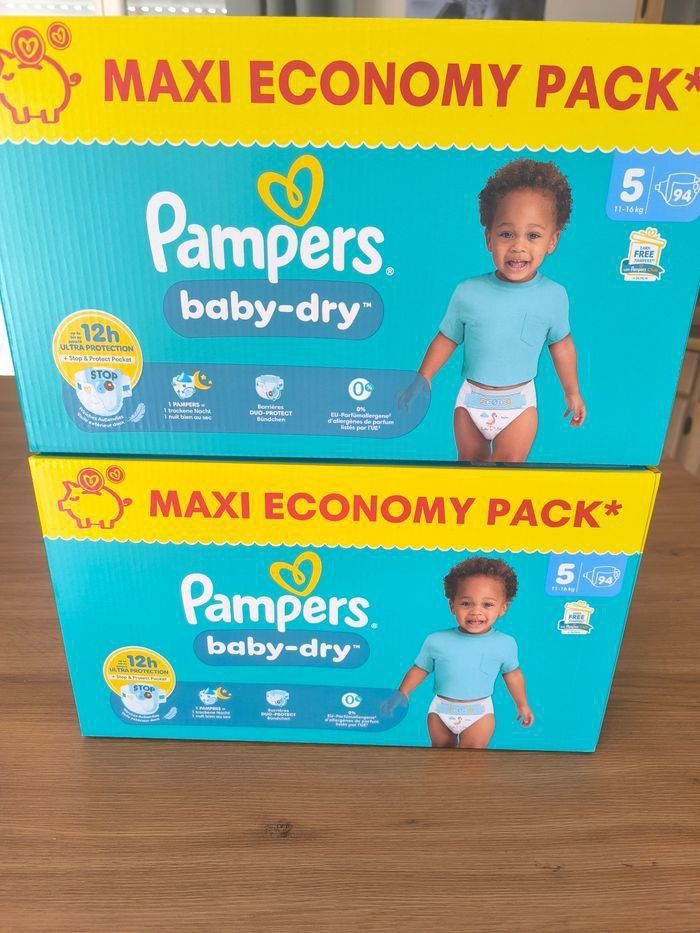 Lot 2 paquets de Couches Pampers Maxi pack pour bébé de 11 à 16kg 94 couches par paquet, soit 188 couches au total