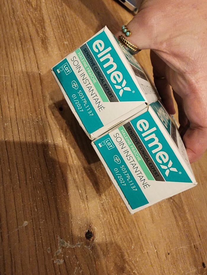 Lot de 2 dentifrices elmex sensitive clinical expert soin instantané haleine fraiche neuf non ouvert, date 01/2027 Plusieurs lot de disponible