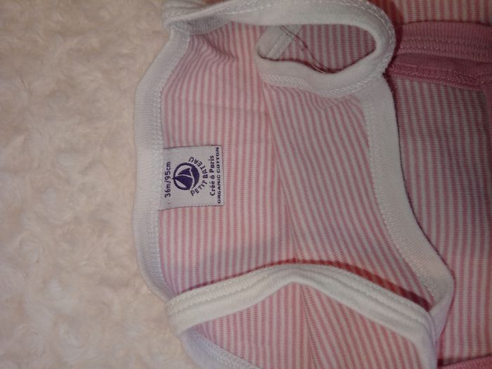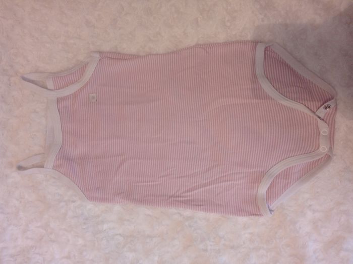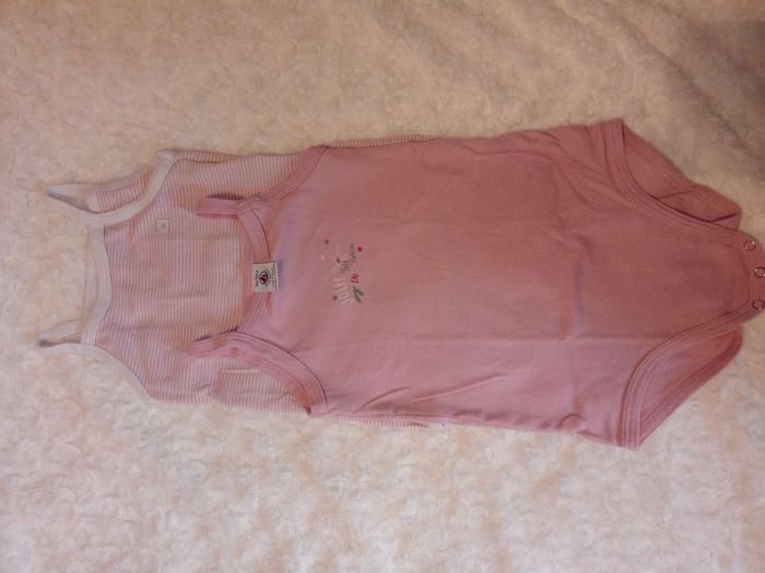 Lot de 2 bodys à bretelles Petit Bateau, 3 ans, 1 rose et 1 à rayures. Etat impeccable