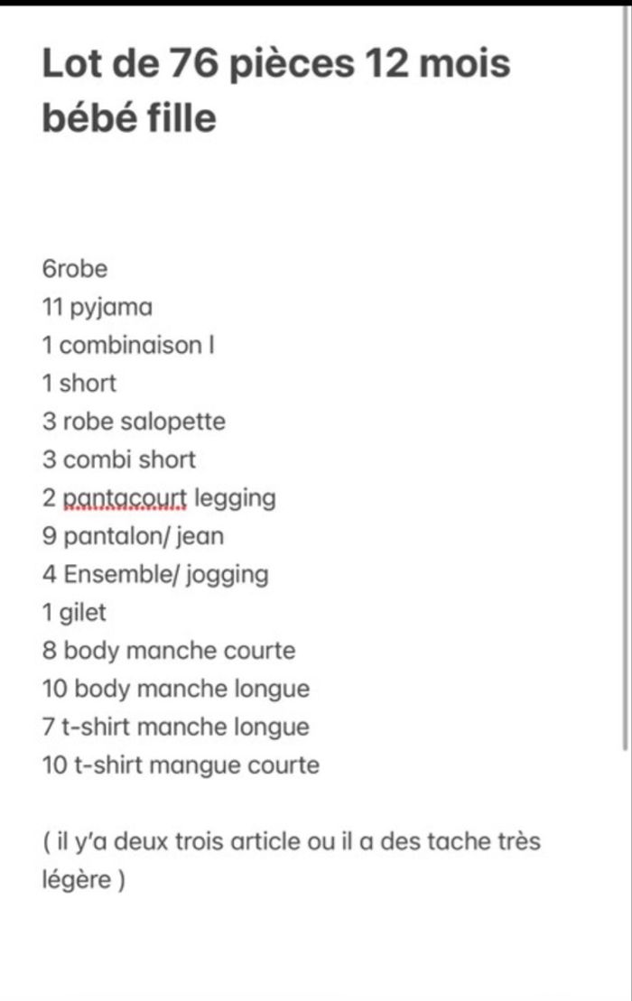 Lot de vêtement divers marque 76 pièces ++ taille 12 mois bébé fille ( + quelque vêtement que j’ai retrouver.. ) Voir deuxième photo pour la description, état nickel il y’a que 2/3 article ou il y’a des tache très peu visible