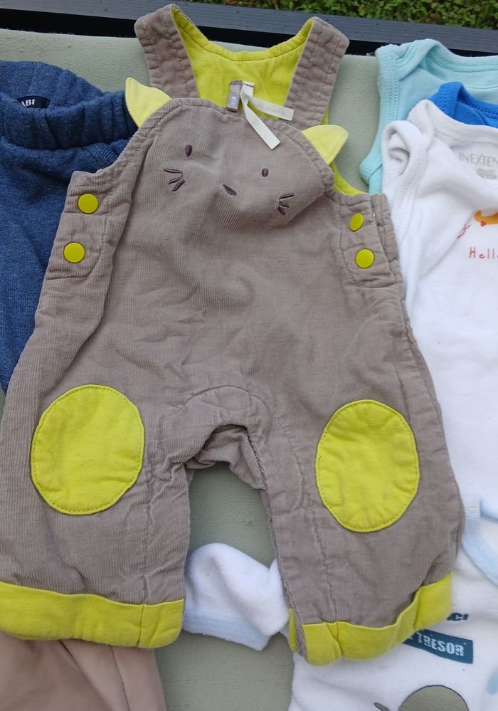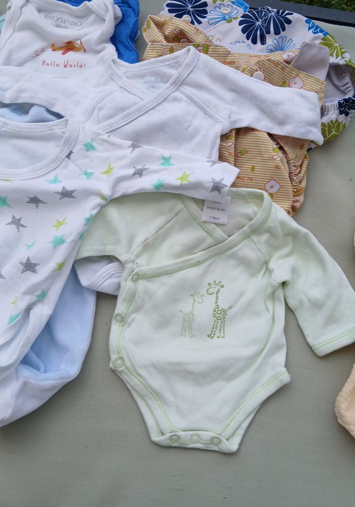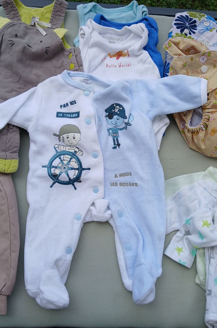 Lot vêtements naissance Taille de 0 à 1 mois 3 body 56 cm 1 Salopette 50 cm 1 Pyjama naissance 1 Pantalon 1 mois 1 Pantalon naissance 3 Body naissance 1 Barboteuse 1 mois 2 Couches lavable