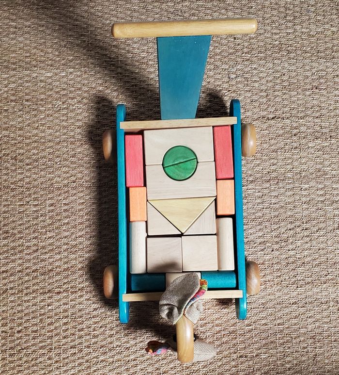 Je vends ce trotteur 2 en 1 car il possède également un jeu de construction intégré. Très bon état.
