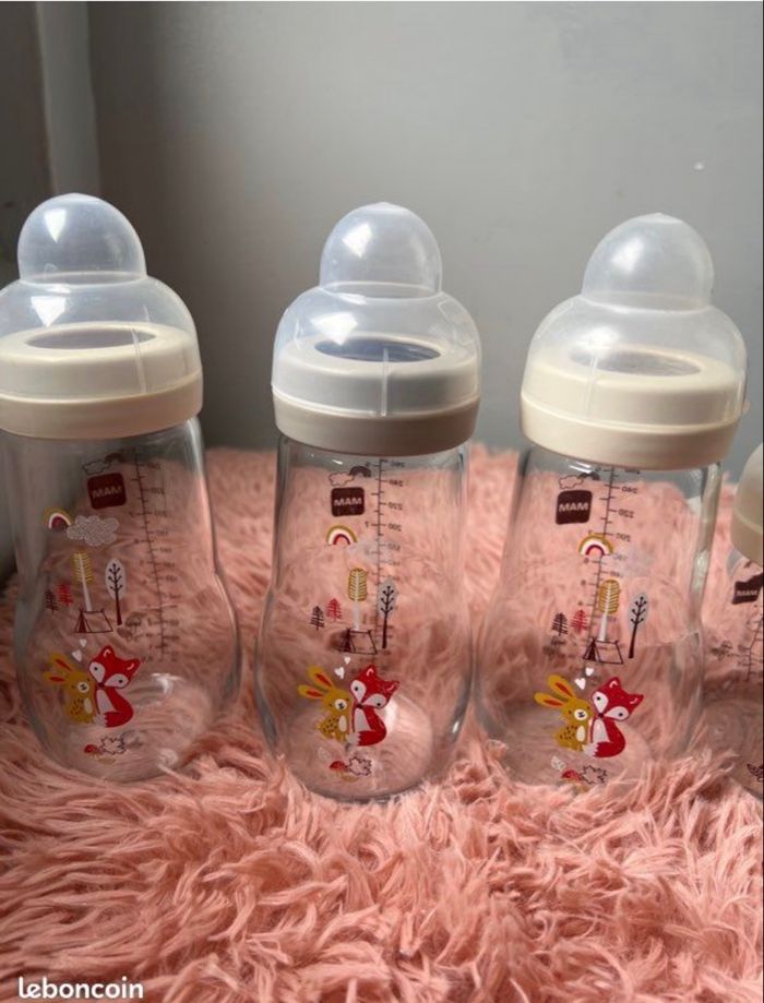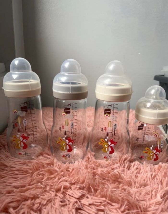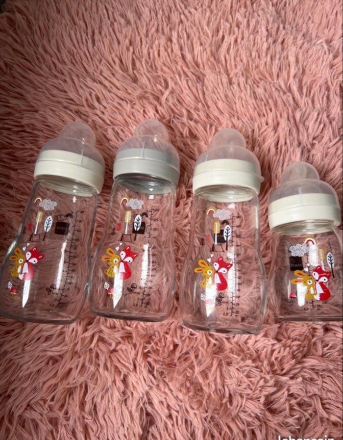 Vente de biberons mam en verre Lot de 3 grands 260 ml et 1 petit 170 ml Très bon état