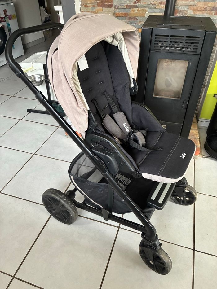 Je vends une poussette joie chrome trio avec la nacelle, le siège auto et les deux housses de pluie. La poignée a quelques défauts que j’ai mis en photo et une des deux housses de pluie a un petit défaut également prit en photo mais qui n’empêche en rien son utilisation ! À venir chercher !