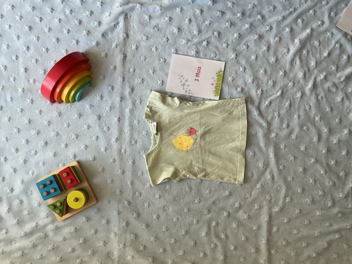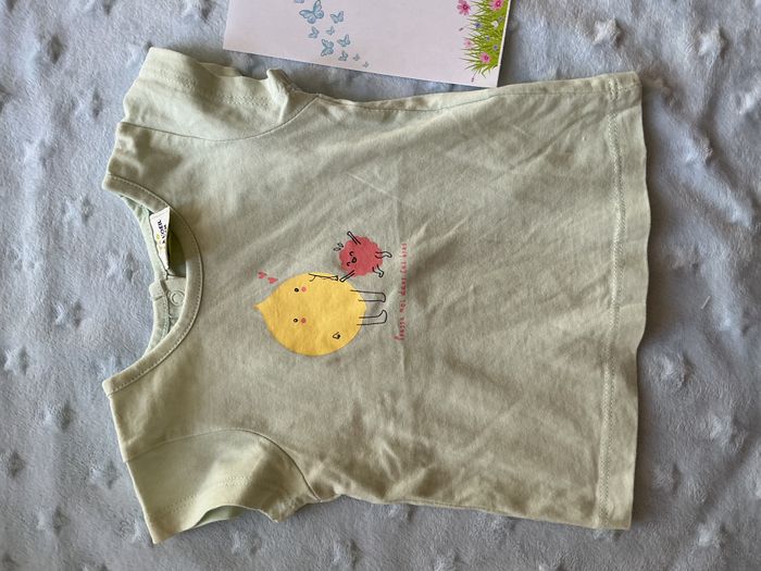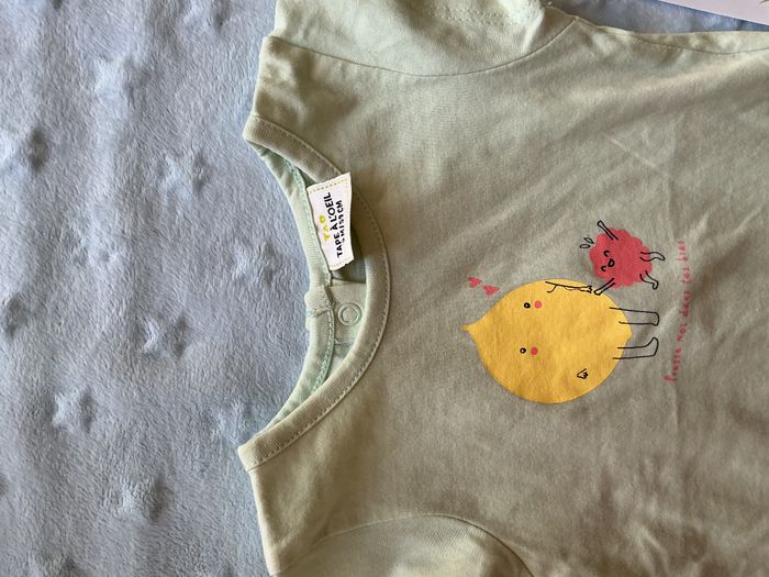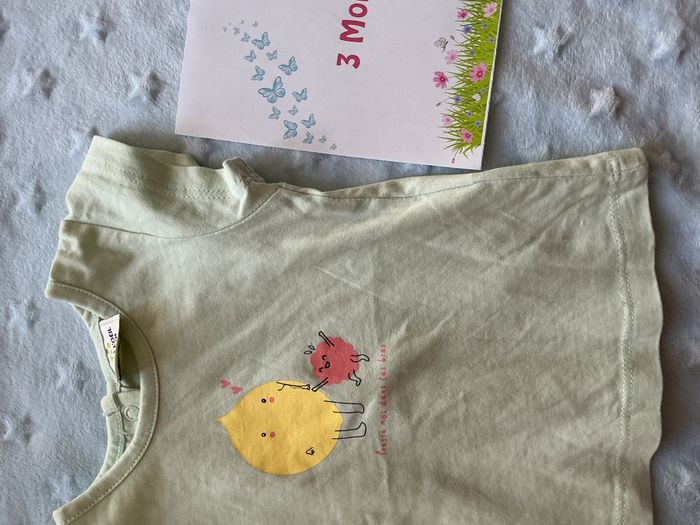 teeshirt manches courtes vert menthe dessin devant 3 mois tape à l'oeil ouverture totale au dos - photo numéro 7