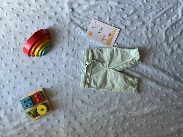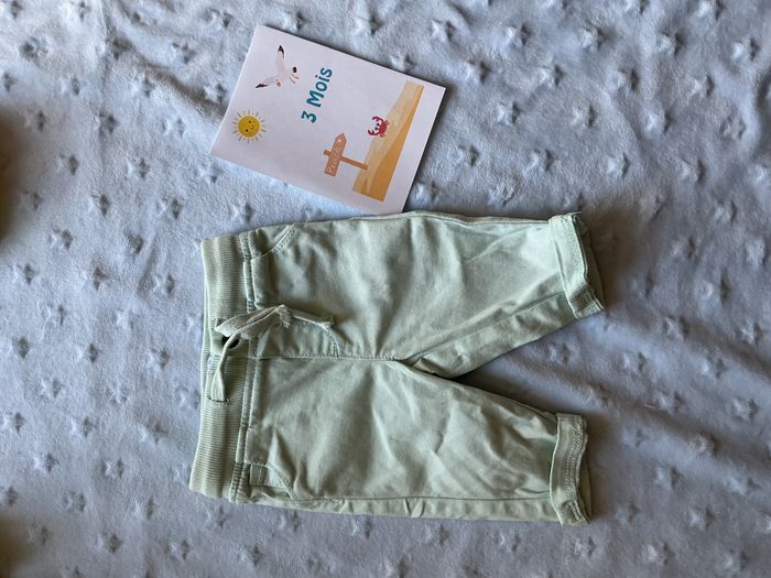 pantalon chino vert menthe mixte taille élastique et lien de serrage 3 mois mots d'enfants - photo numéro 1