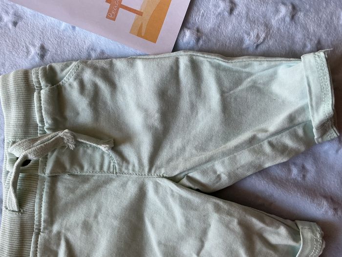 pantalon chino vert menthe mixte taille élastique et lien de serrage 3 mois mots d'enfants - photo numéro 7